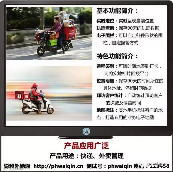 澎和外勤通是一种运用于安卓智能手机、苹果智能手机、GPS终端机等移动智能设备上的应用软件,提供针对终端设备的实时定位、活动轨迹、安全保障、考勤管理等相关服务。