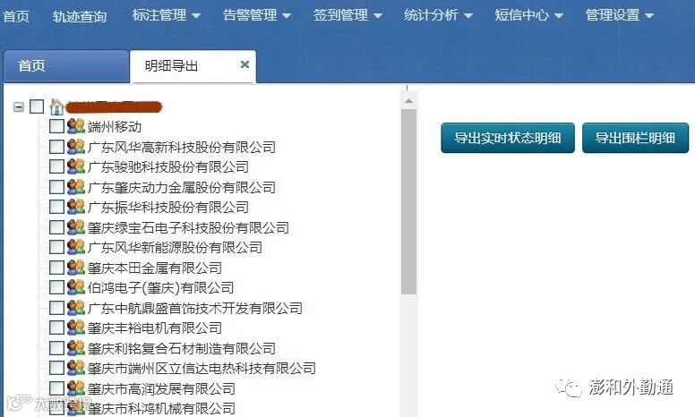 操作如下:在左侧的部门列表中,勾选全部或勾选部门,点击右侧导出功能按钮,分别导出“人员明细表”或“围栏明细表”,下载保存。