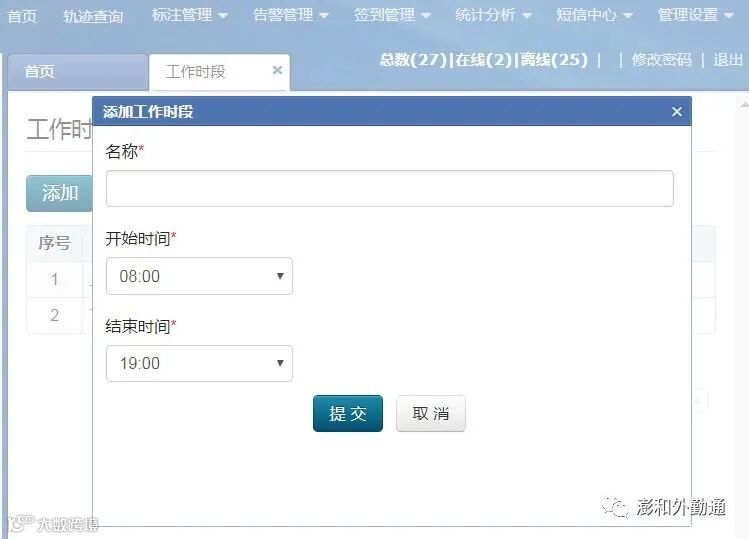 定位开始时间、定位结束时间可以理解为上、下班的时间。