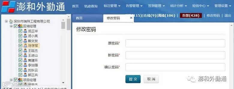 修改密码:输入原登录密码,输入新密码,点提交。