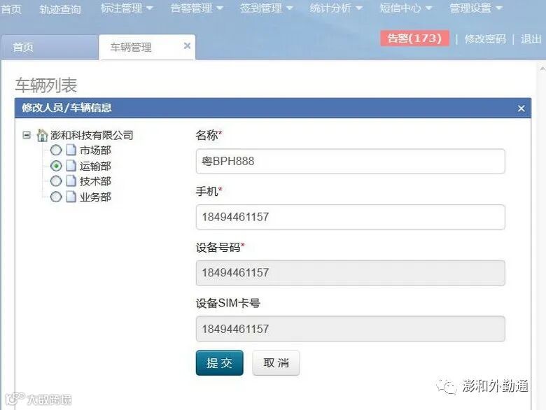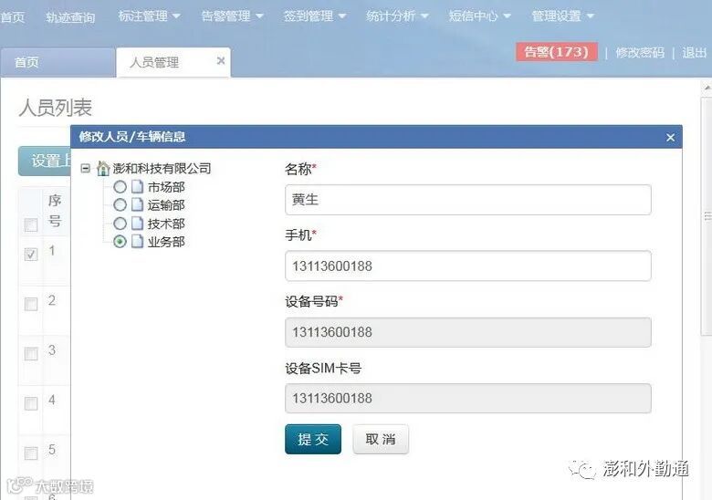 注:“设备号码”、“设备SIM卡号”为定位专用号码,用户无法修改。如果客户更换设备或更换手机号码后,请联系澎和科技客服人员进行更改。