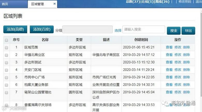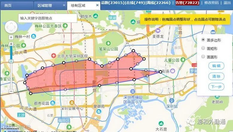 点击区域列表的名称信息,平台地图将直接跳转已设置的区域位置及设置的区域覆盖面。