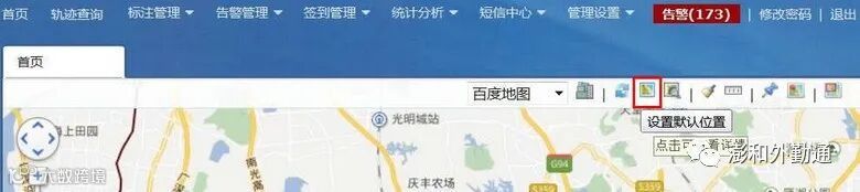 点击“显示默认位置”图标,地图跳转显示设定的默认位置;以后登录成功后自动显示默认位置。