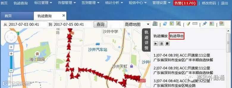 注:轨迹查询只能单个显示。