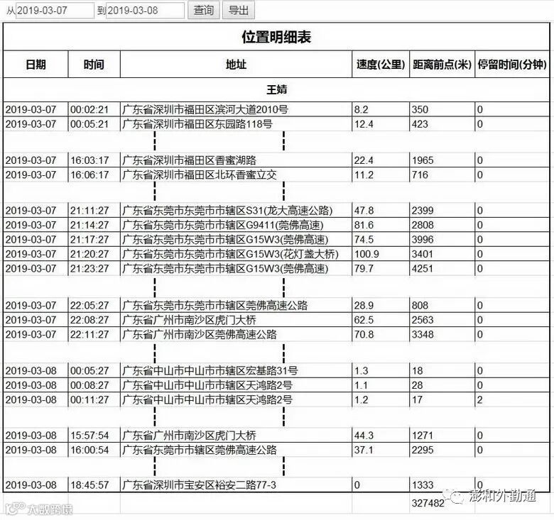 5. 选定时间后,点击“查询”按钮,即可展示出选中终端设备的签到的位置明细;