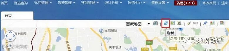 页面已设置自动刷新,左侧的位置信息为15秒自动刷新一次,也可以随时手动点击“刷新”按钮刷新页面及最新位置信息。