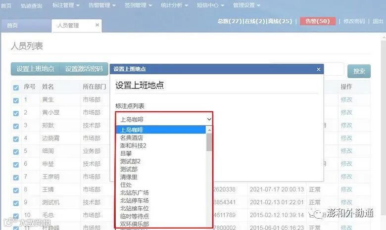 上班地点的设定要分两步完成,一是地图标注上班地点,二是设置与上班地点关联的人员。