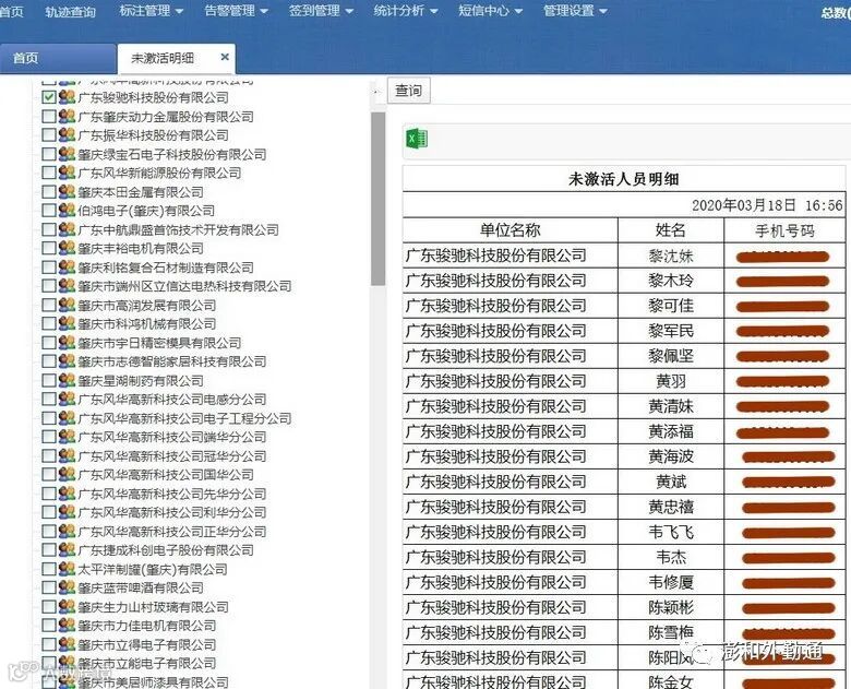 通过“未激活人员明细表”管理可以了解人员安装手机APP的人员情况,向相关人员进行提醒。