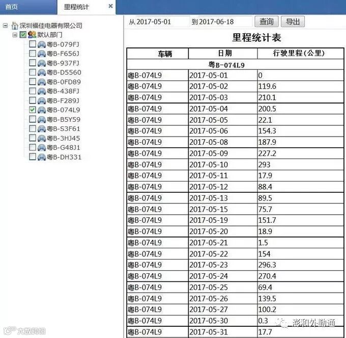里程统计:自动生成里程统计报表、终端设备每日的行驶里程一目了然。所有数据支持导出Excel表格下载保存。