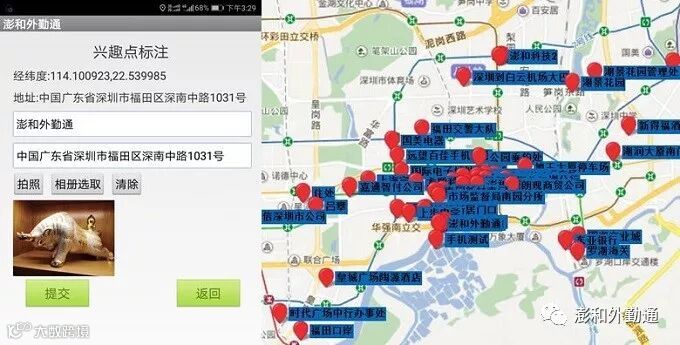 标注点:即可以用手机实地直接将兴趣点标注,也可以在平台地图上标注出关注的地点,可以添加、修改、删除数据,并且以地图的形式作展示。