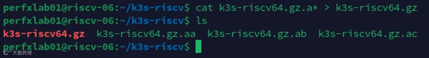 由于预编译好的k3s包已被分为三个文件,因此需要将三个文件合并为一个文件