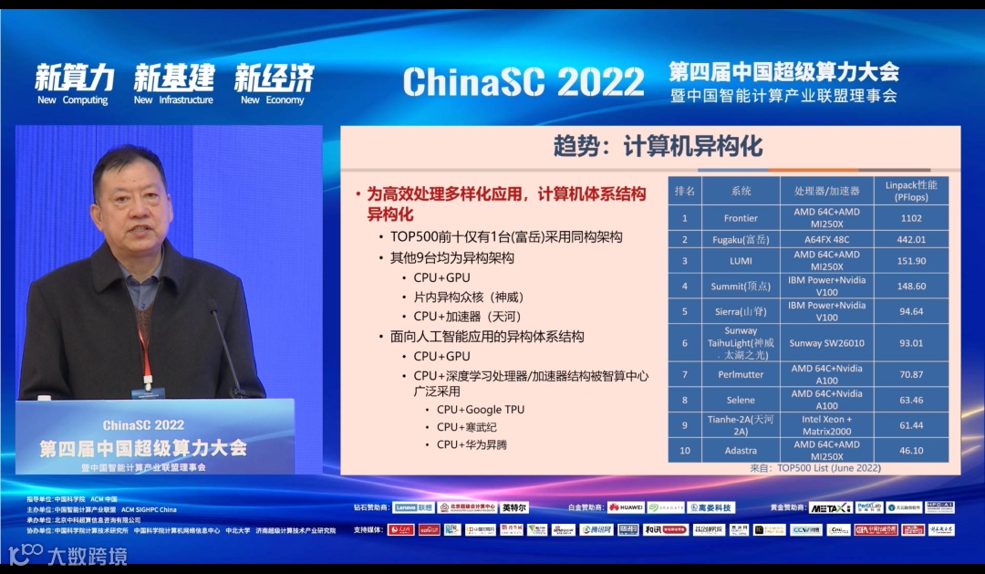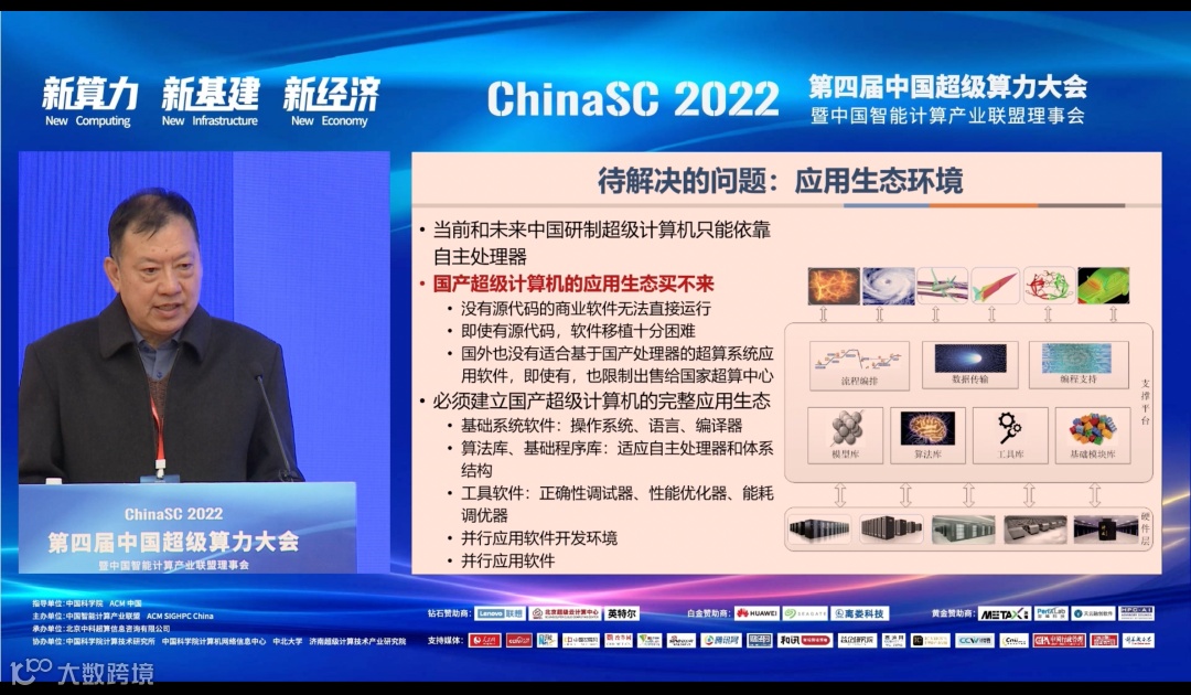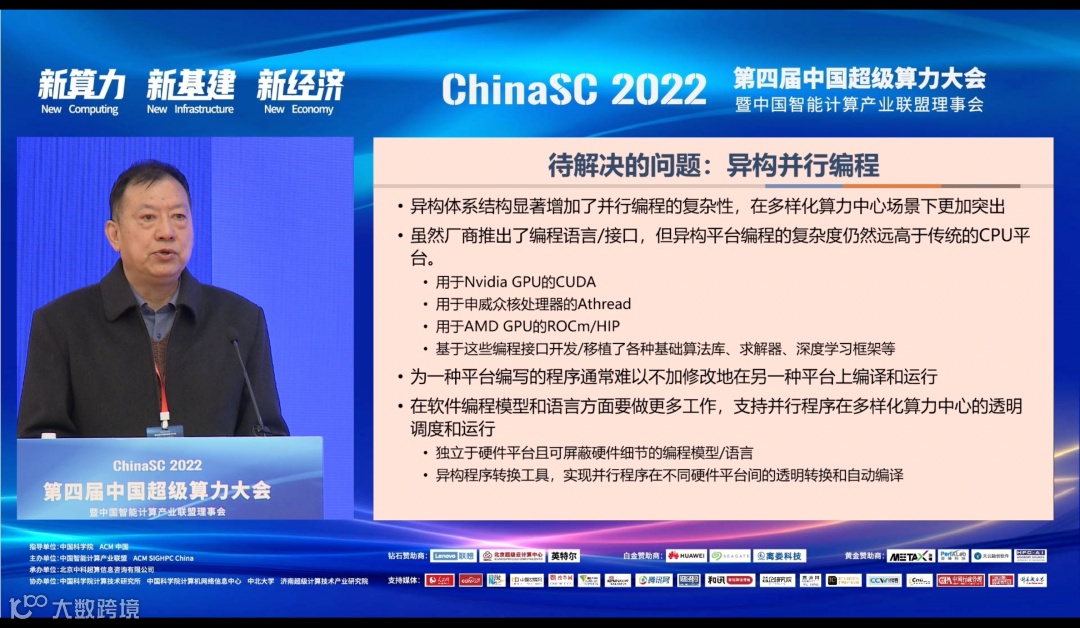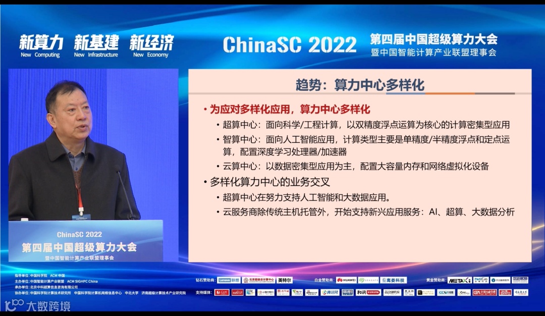 第四届中国超级算力大会ChinaSC2022期间,中国科学院钱德沛院士作了题为《从网格到东数西算:构建国家计算基础设施》的演讲报告。