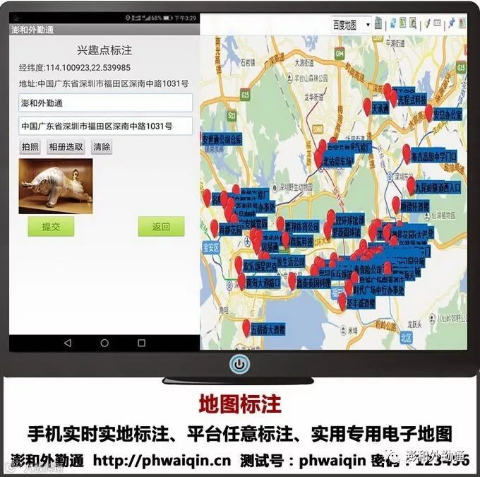 车载GPS定位机:支持车载定位终端机、兼容多种品牌的定位终端机及绝大部分通用协议;用户可自带终端设备加入澎和外勤通平台。