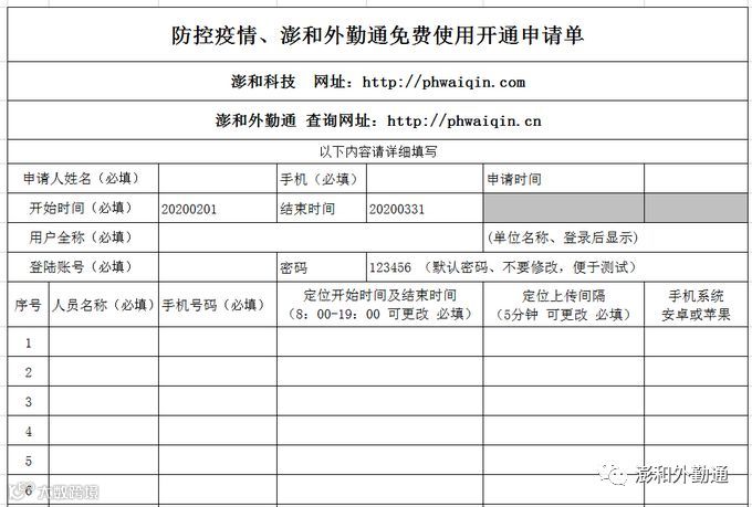 C. 澎和科技网站(http://phwaiqin.com)自行下载申请表,填写完成后,发送邮件至澎和科技邮箱,请注明免费使用“澎和外勤通”。