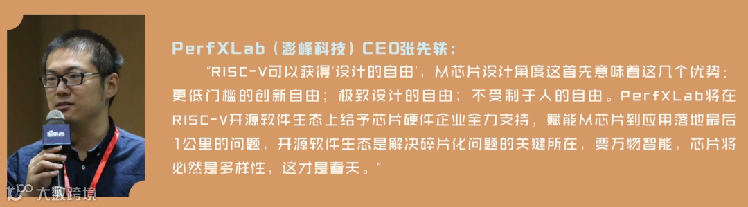 张先轶再次强调了要充分发挥RISC-V的开源特性:“你可以获得‘设计的自由’,从芯片设计角度这首先意味着这几个优势:更低门槛的创新自由;极致设计的自由;不受制于人的自由。PerfXLab将在RISC-V开源软件生态上给予芯片硬件企业全力支持,赋能从芯片到应用落地最后1公里的问题。”