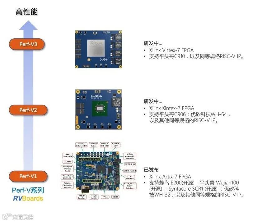 “ RVBoards致力于推动RISC-V的开源软件生态建设,通过开源软件赋能每一片RISC-V Board。Perf-V系列是由PerXLab研发设计的FPGA开源硬件平台,专门用于RISC-V IP的开发、验证和学习的开源硬件平台,已支持多种RISC-V的开源IP和商业IP。”