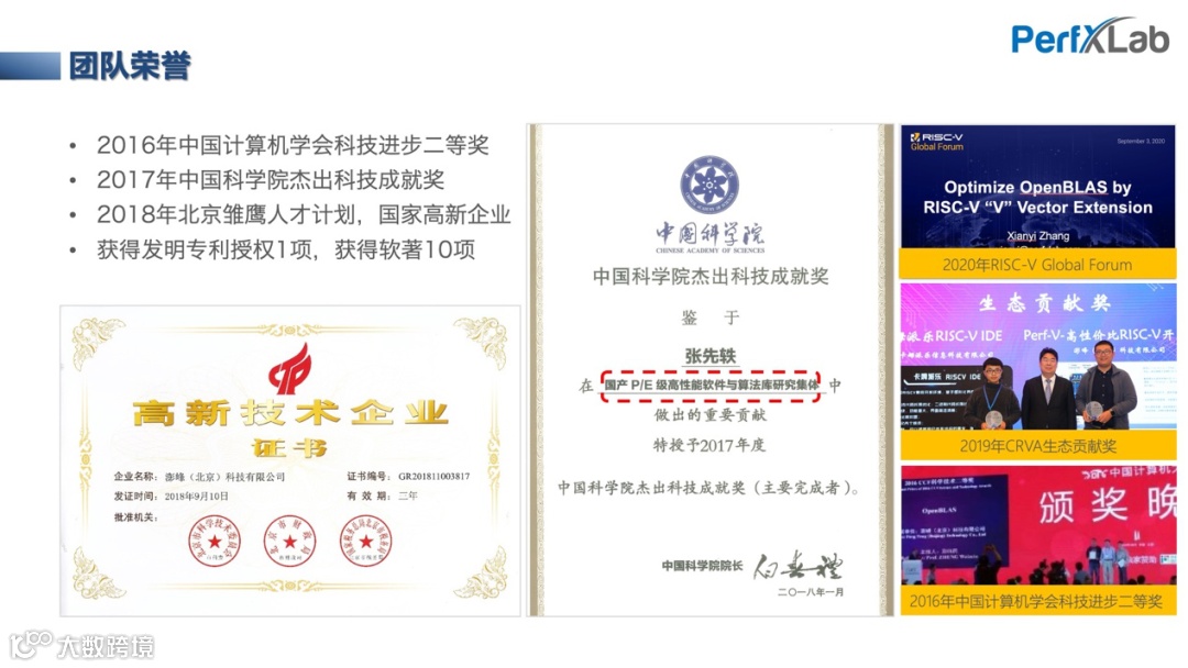 PerfXLab 澎峰科技是一家国内领先的、专注于计算软件栈的技术公司,提供基于ARM/FPGA/GPU/RISC-V等终端平台的完整计算软件栈解决方案,包括应用算法、框架、高性能计算库、软件工具,以及相关硬件板卡等。应用领域:主要服务于计算硬件领域的行业大客户,以及通过开源理念发展开发者、爱好者和大学教育市场等。其公司核心技术成员来自麻省理工和中科院,具有丰富的底层计算技术经验。