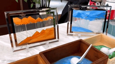 摆放着画框和五彩斑斓的细沙