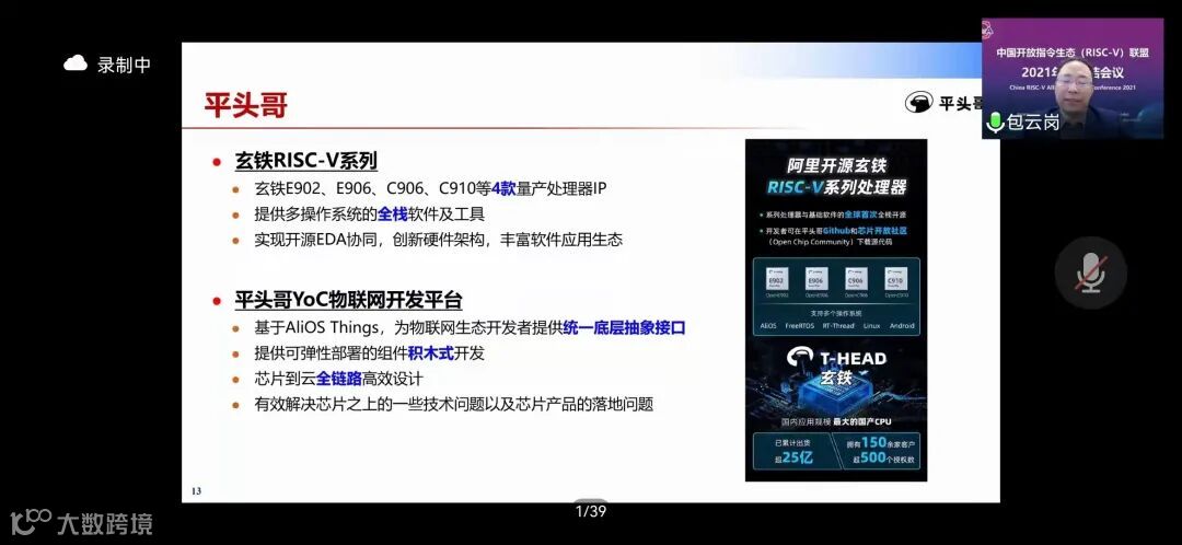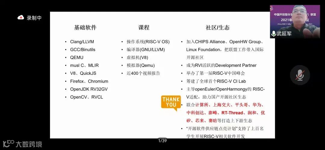 | 2022年1月24日,“中国开放指令生态(RISC-V)联盟2021年会(线上)”成功举行。本次大会邀请了RISC-V国际基金会、国内RISC-V行业领军人物、产业联盟/科研院所代表等多位业内知名人士围绕RISC-V技术、产业、生态各个方面进行报告和展望。 |