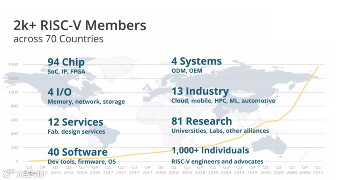 截至2021年12月,RISC-V International 企业成员来自70多个国家,企业成员数量增长至2000多家,与2015年初创时相比增长了50多倍。