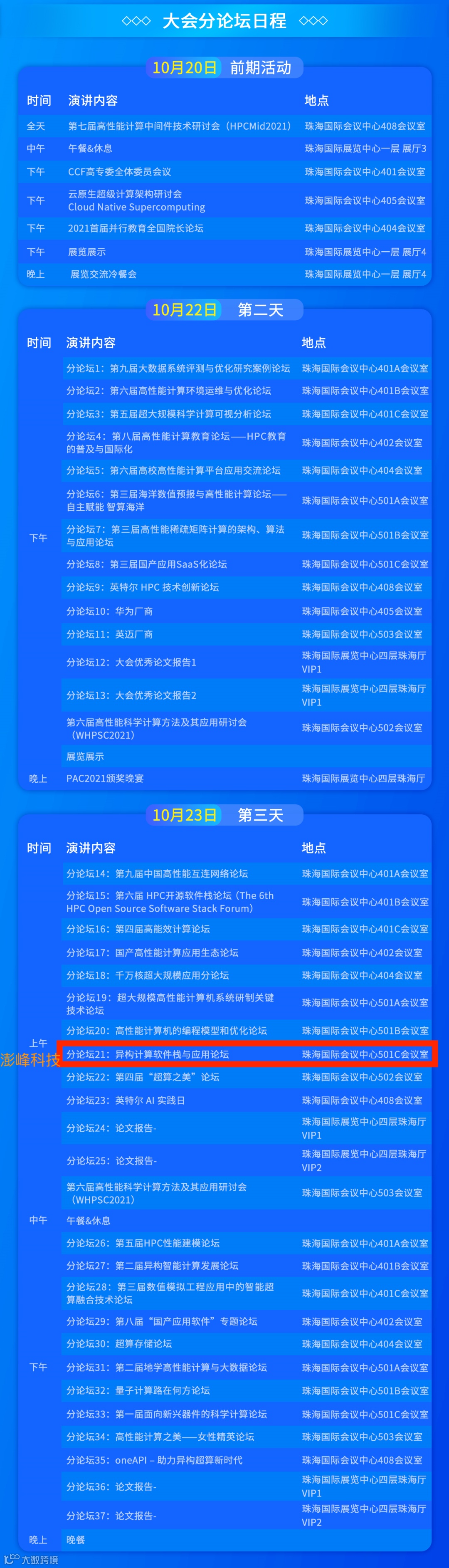 CCF HPC China 2021将于2021年10月21-23日(展览10月20-22日)在珠海·横琴拉开帷幕,来自全球超算领域的专家学者、企业应用开发者、科研机构及高校专业人士将齐聚“百岛之市”,共话高性能计算、AI人工智能、大数据、智能制造、5G通讯、数字孪生等诸多前沿领域领热点与技术创新突破。