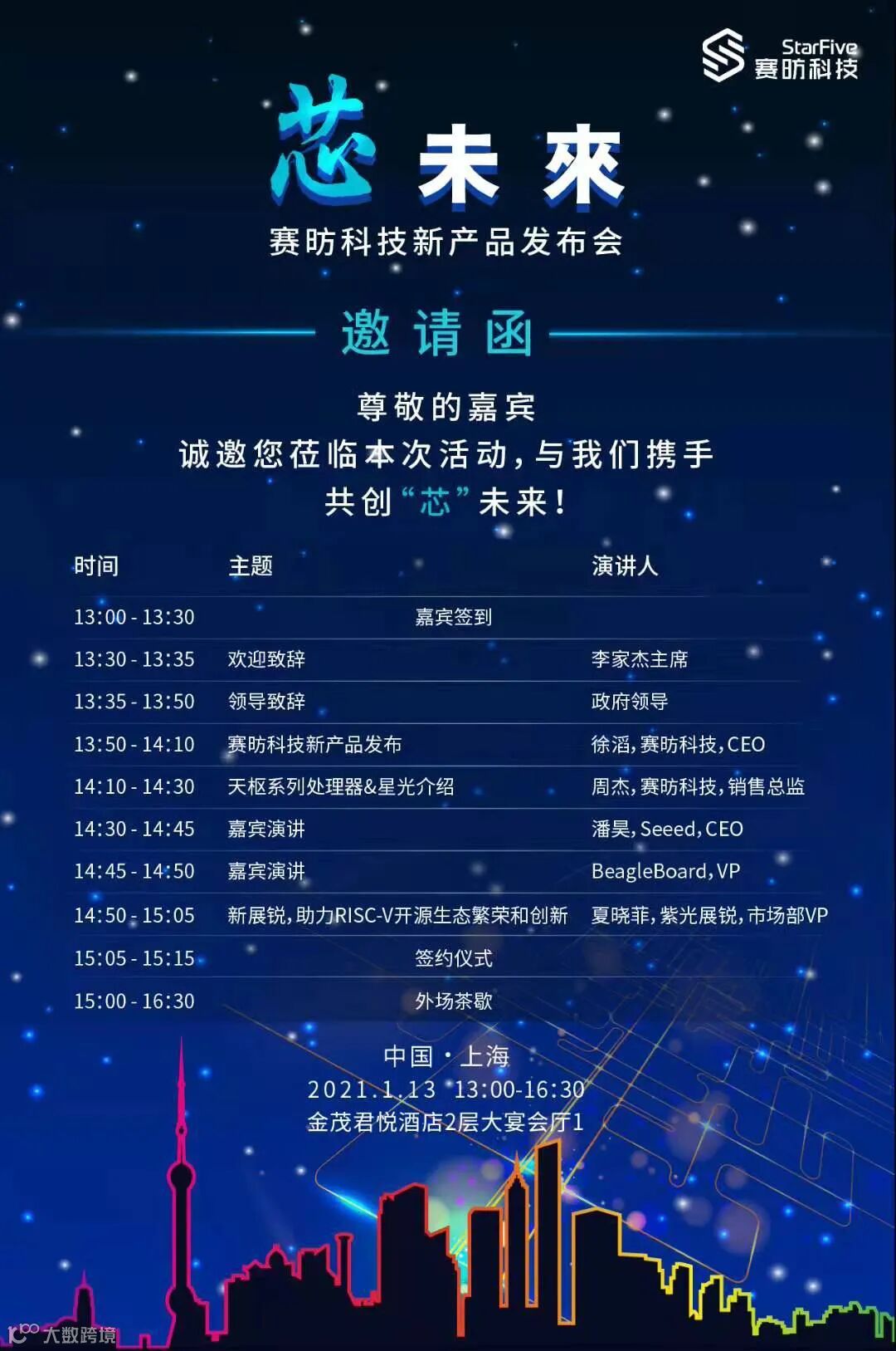 StarFive于2021年1月13日,在上海金茂君悦酒店举行新产品发布会,重磅发布2021年首款产品。VIC7100是一颗U74 Dual-Core 64-bit RV64GC ISA SoC,并发布单板计算机开源硬件Beagle(星光)。