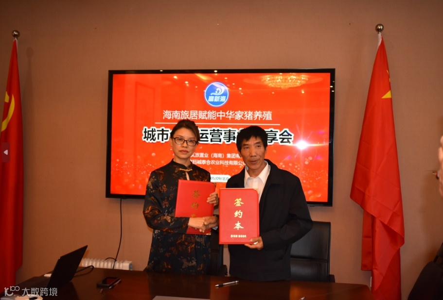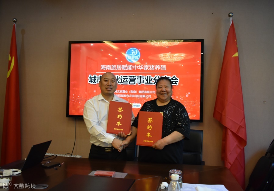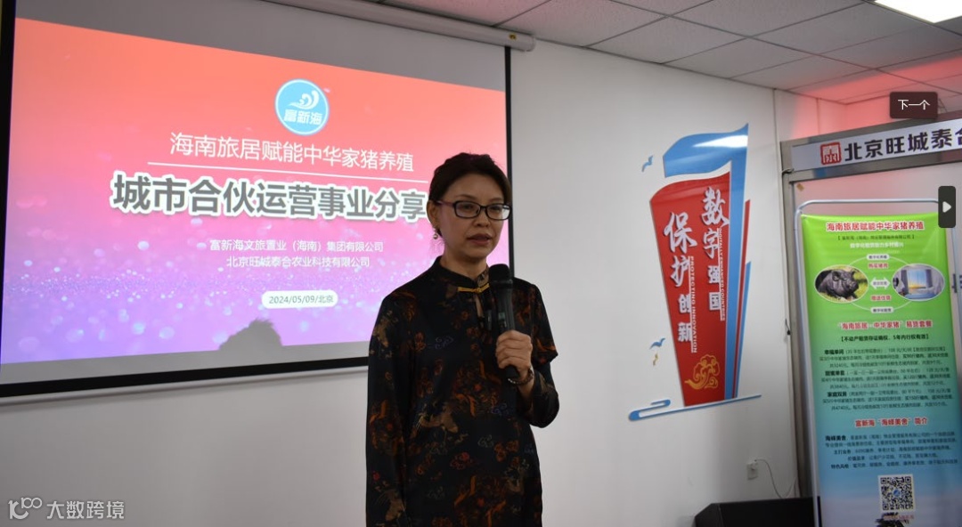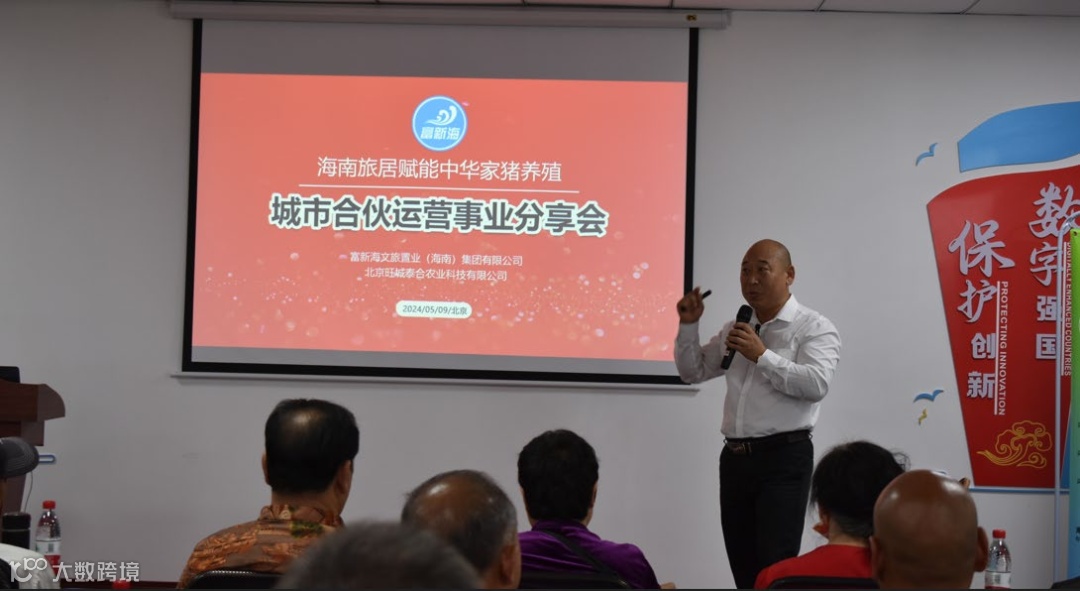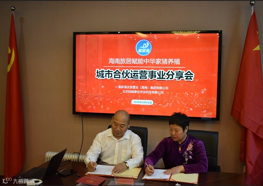 2024 年 5 月 9 日上午,富新海文旅置业(海南)集团有限公司与北京旺城泰合农业科技有限公司共同组织的海南旅居赋能中华家猪养殖城市合伙运营事业分享会在京成功举办,由富新海文旅置业(海南)集团有限公司推出“购买中华家猪生态猪肉,赠送海南旅游度假海景房住宿”的商业模型,为中华家猪事业与文化旅游项目相互赋能、完美发展奠定了坚实的基础,是泰旺福中华家猪推行“万企兴万村,万村助万企,家猪来买单!”的又一完美呈现。