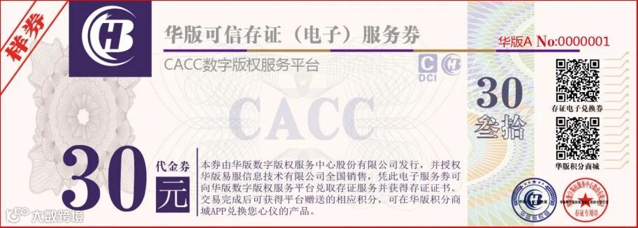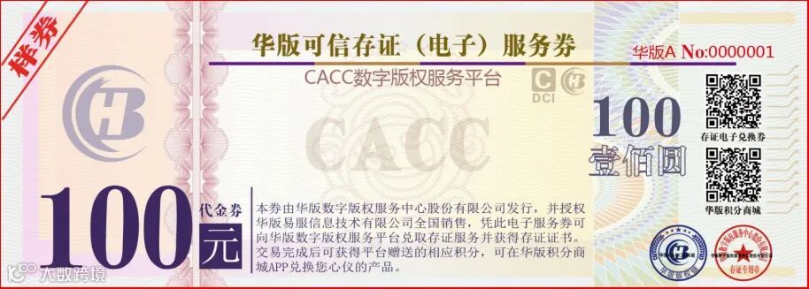 CACC可信数字版权存证版票发行
