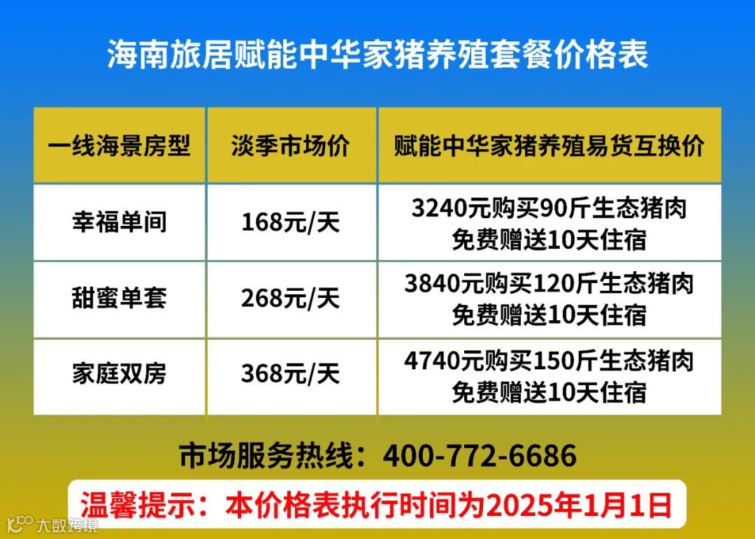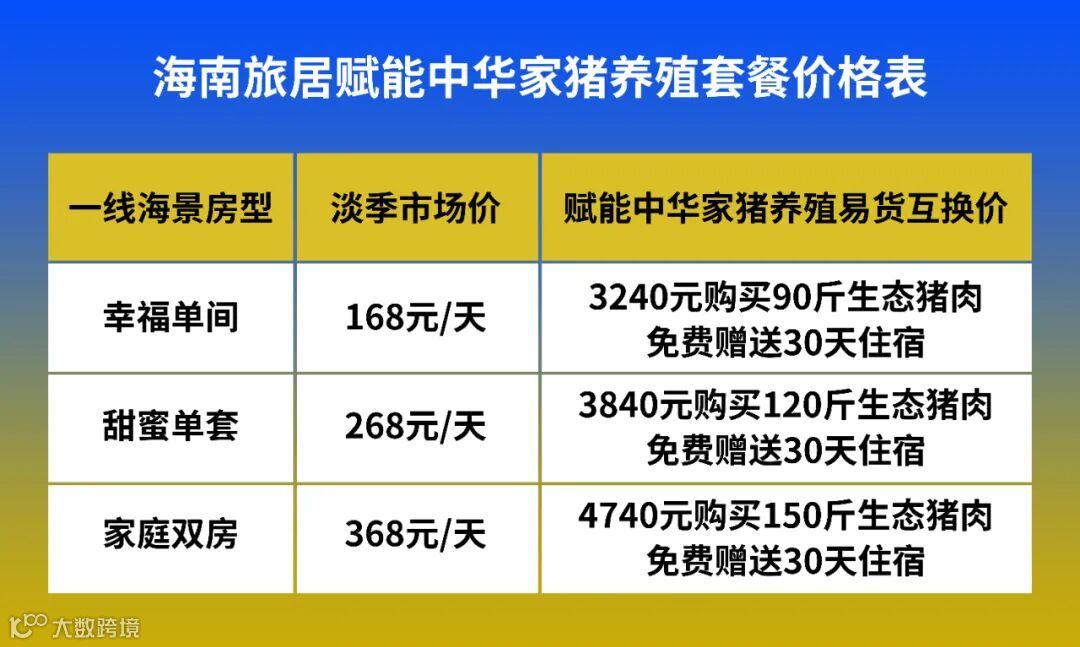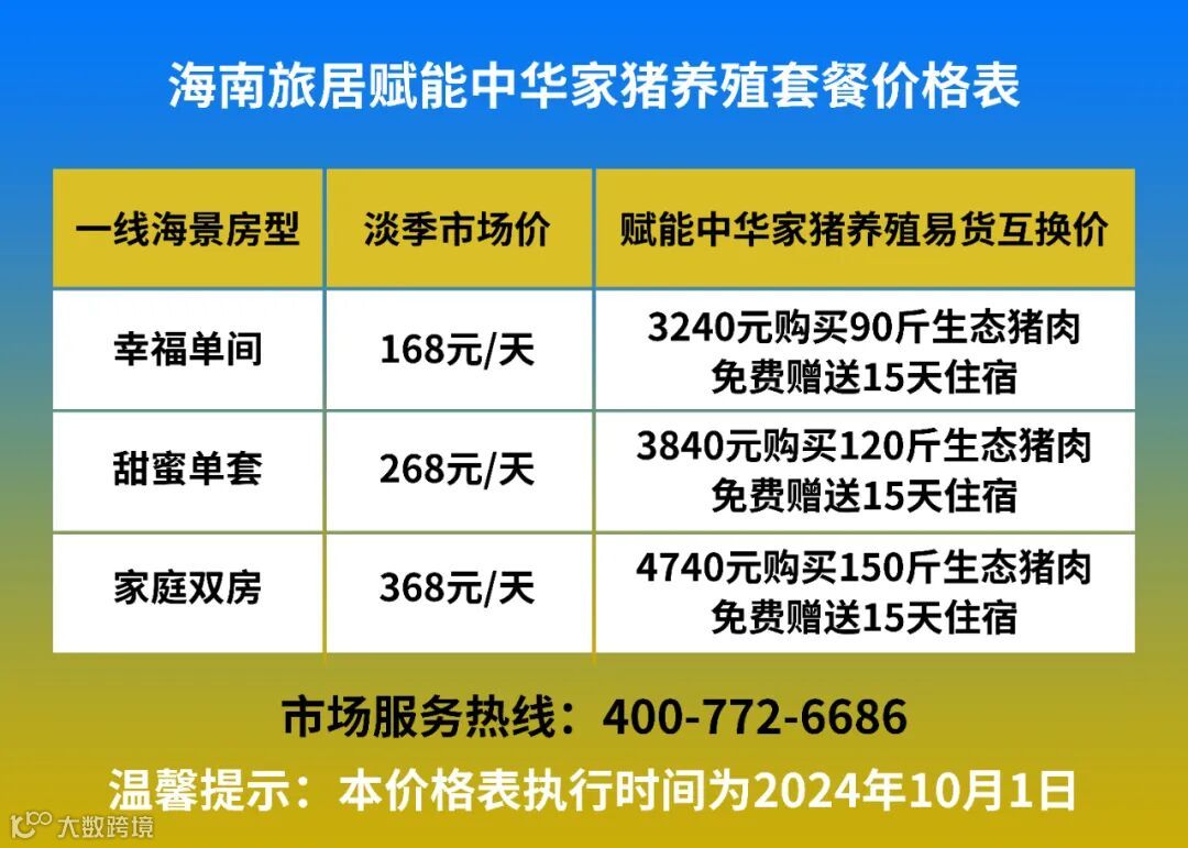 敬请关注“海南旅居赋能中华家猪养殖”套餐价格变化