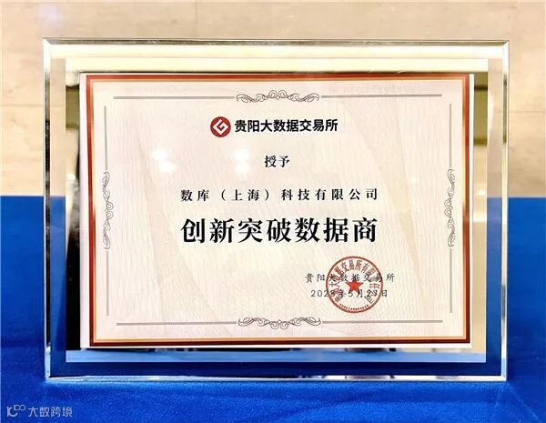 基于此案例,数库科技也被评为了“创新突破数据商”: