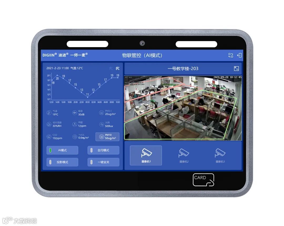 迪进AI智慧办公有别于传统的红外人体感应办公控制系统,把办公室内原有的设备功能对接迪进AI盒子统一管控,实现AI智慧物联,全智能无人托管。减少人为干预过多局面,实现真正意义上的节能减排。
