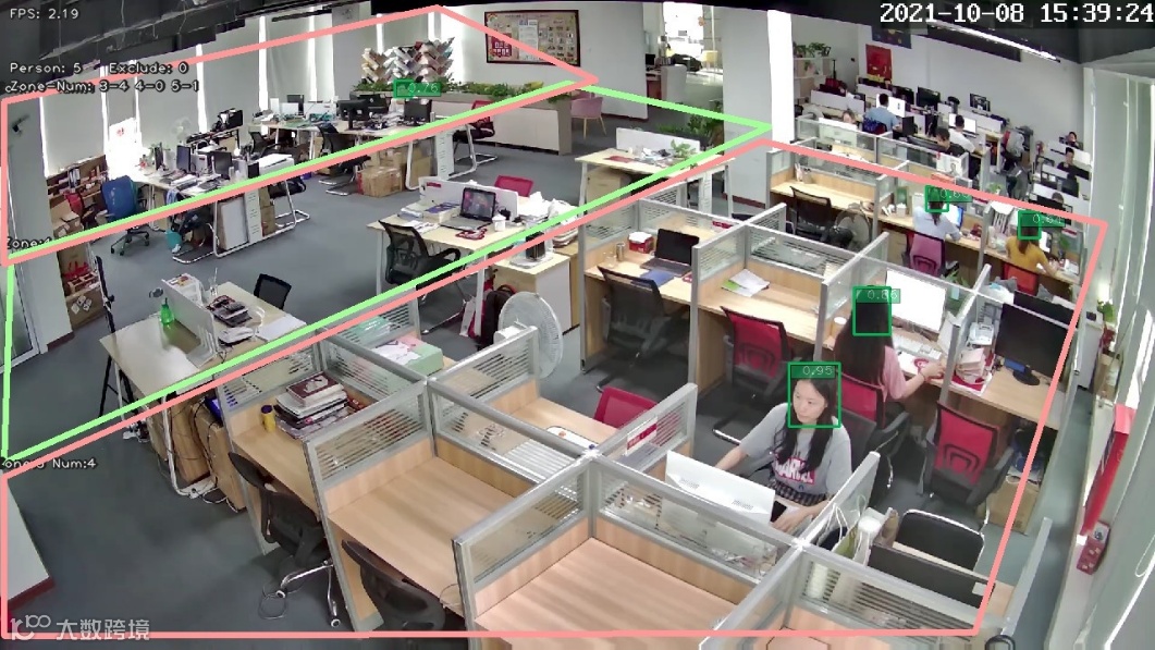 3、 傻瓜化AI设备控制,支持用户自定义检测区域,支持不规则多边形区域