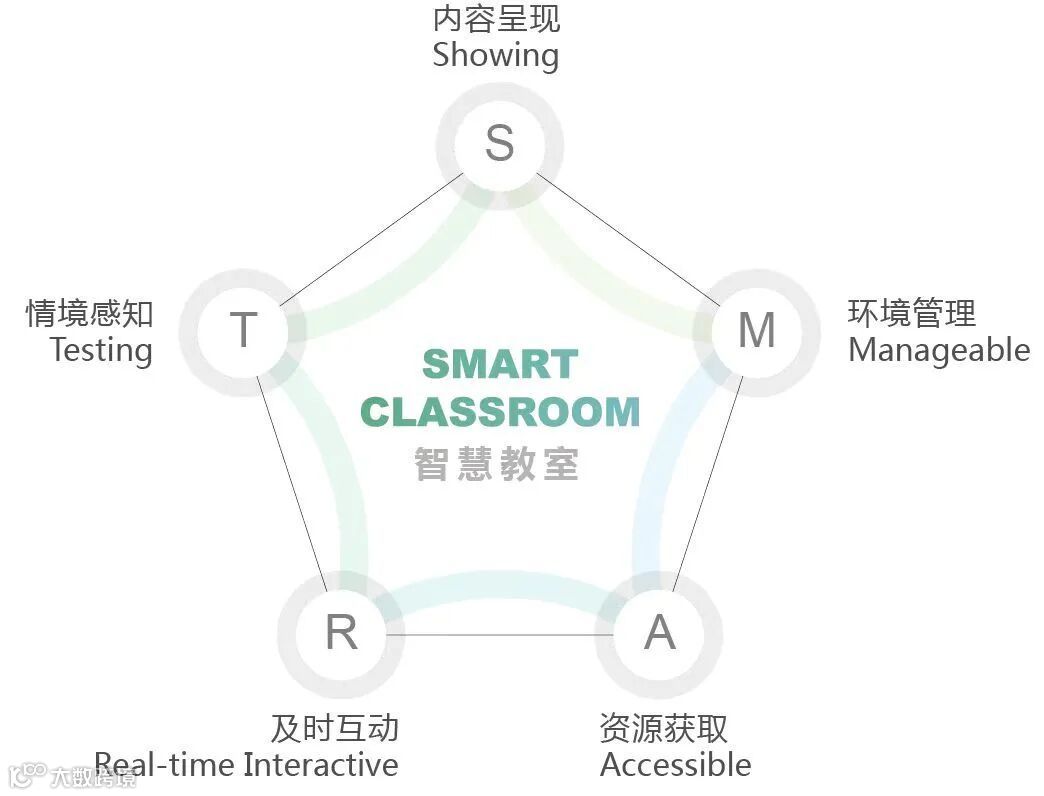 智慧教室的“智慧性”将其概括为内容呈现、环境管理、资源获取、及时互动、情境感知五个维度,这五个维度正好体现了智慧教室的特征。