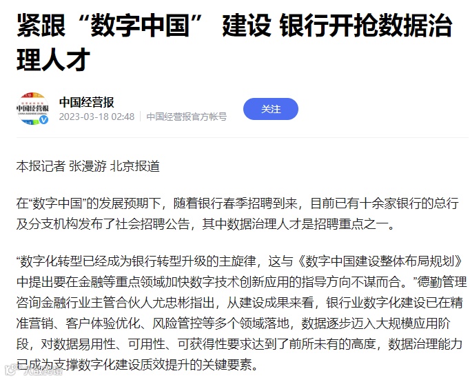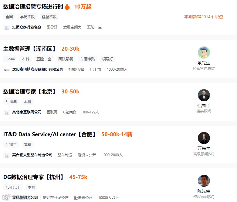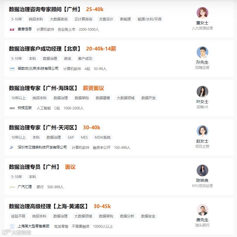 【上各大招聘网站看看数据治理相关招聘热度就明白数据人才多吃香了】