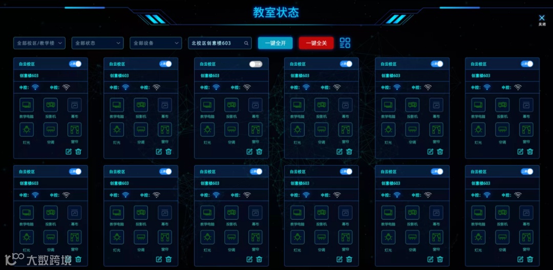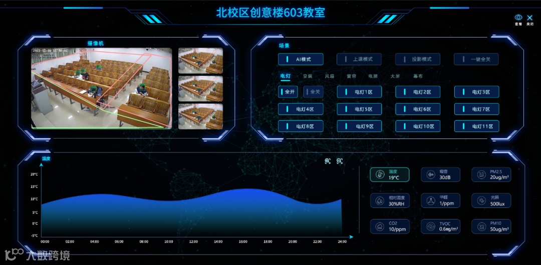 为了防止学生自习完后,离开教室没有关闭教室设备,迪进AI物联智慧教室通过无线物联网智能化控制各种设备,从而做到“无人托管”、“无为而智”,及时关灯、风扇、空调等基础设施,达到节能减排,节约用电,提供一个全面感知、智慧型的一体化智慧教室管理。