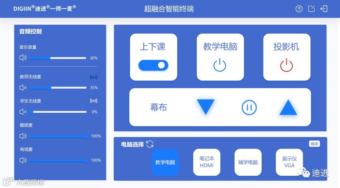 为教室中的所有设备提供现场集中操控和远程集中监控的双余度管控模式,增强设备使用和管理的可靠性和便捷性,实现节能环保、智能高效的新理念智慧校园多媒体教室。