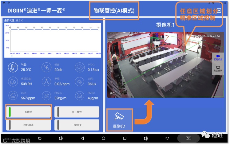 3、 傻瓜化AI电教设备控制,支持用户自定义检测区域,支持不规则多边形区域