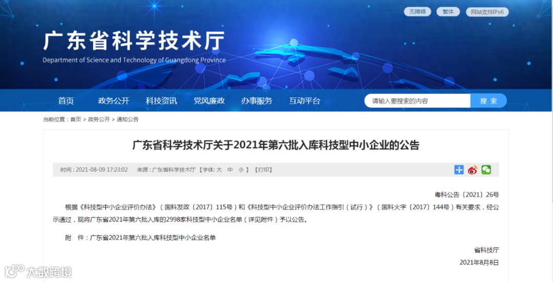 点击阅读原文查看附件:广东省2021年第六批入库科技型中小企业名单