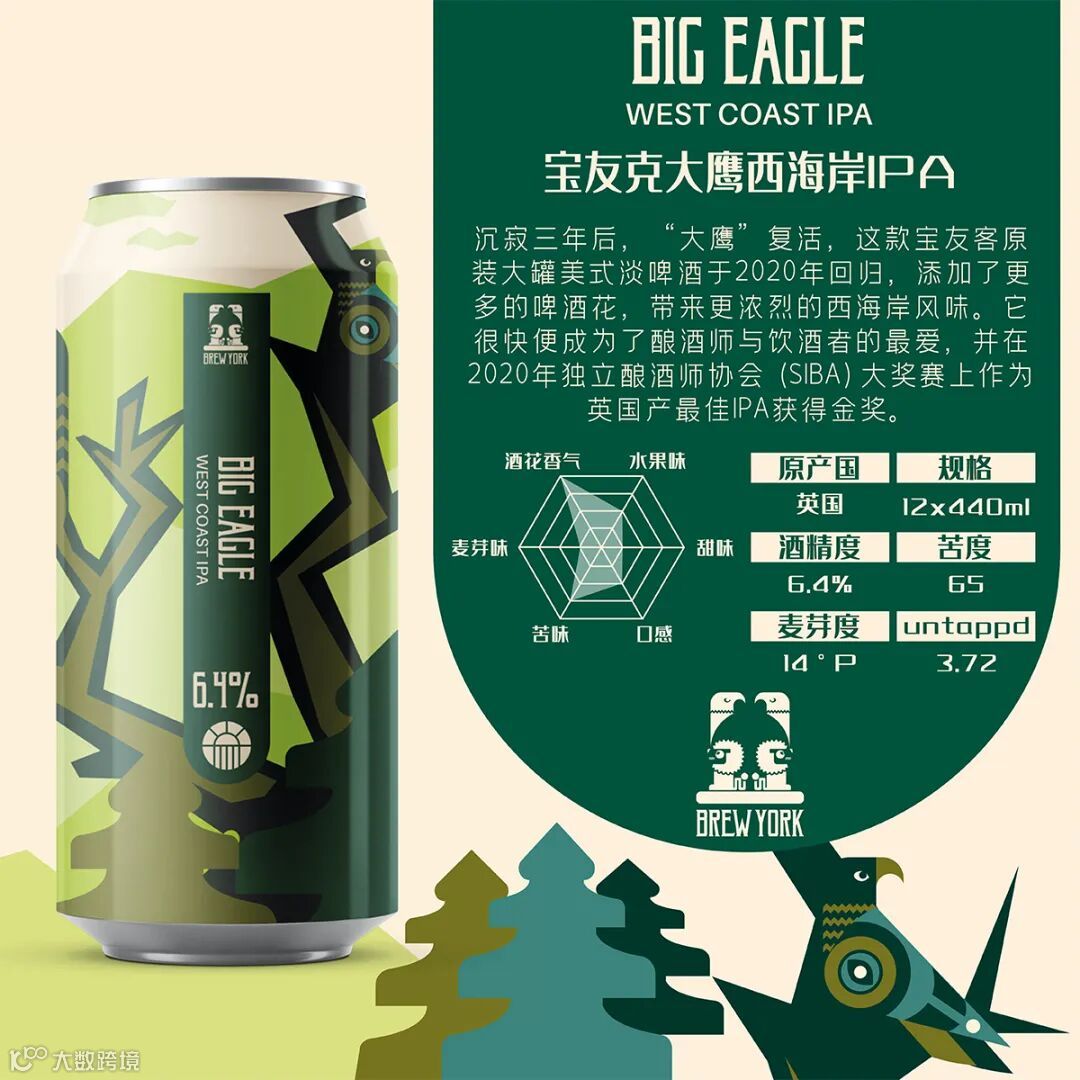 沉寂三年后,“大鹰”复活,这款宝友客原装大罐美式淡啤酒于2020年回归,添加了更多的啤酒花,带来更浓烈的西海岸风味。它很快便成为了酿酒师与饮酒者的最爱,并在2020年独立酿酒师协会(SIBA)大奖赛上作为英国产最佳IPA获得金奖。