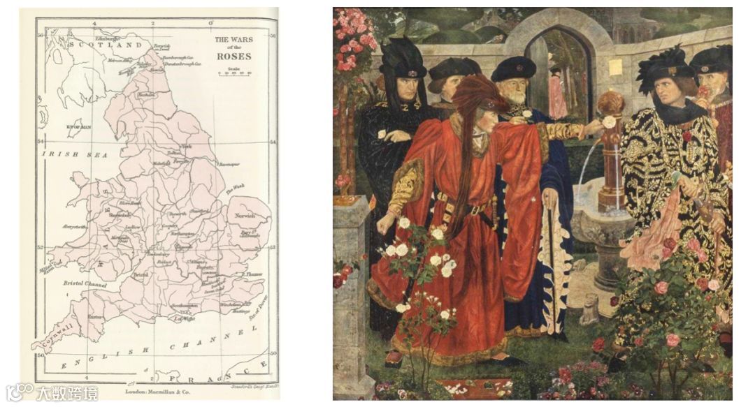 亨利都铎(亨利七世),一位来自兰卡斯特的里士满伯爵,在1485年8月22日的博斯沃思战役中击败了约克人---国王理查三世,赢得了战争。人物画像中,亨利七世手握一朵红玫瑰。
