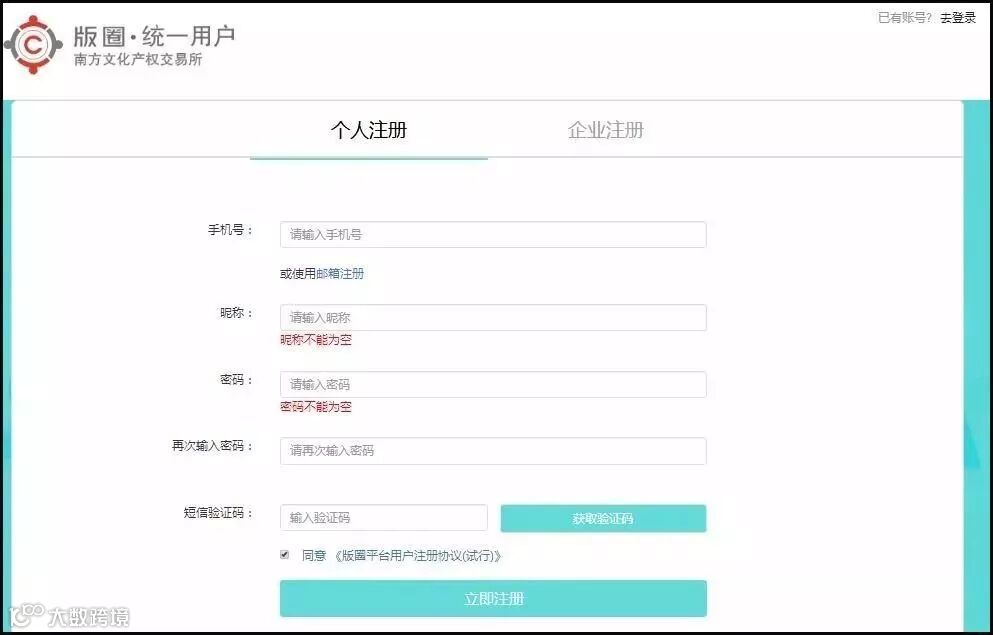 选择个人/企业的身份