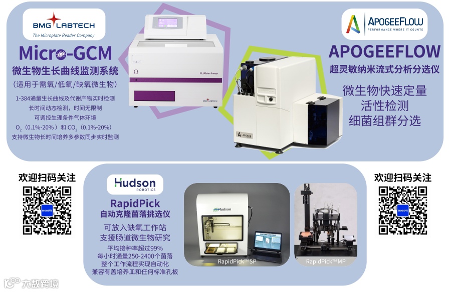 进科驰安(Bio-Gene)诚邀您莅临 2025 中国肠道大会,共探微生物研究前沿!作为展会赞助商,我们将携三大核心技术产品亮相 —— 德国 BMG Labtech 微生物生长曲线监测系统Micro-GCM(实时动态检测微生物生长轨迹)、英国ApogeeFlow超灵敏纳米流式分析分选仪(微生物快速定量、活性检测和细菌组群分选)、美国Hudson Robotics自动克隆菌落挑选仪(智能化提升菌落筛选效率)。