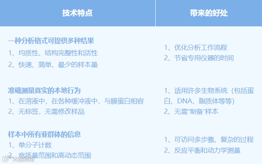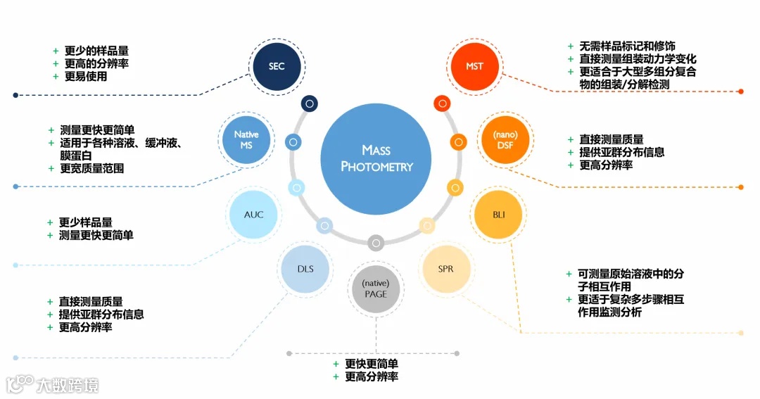质量光度法(Mass Photometry)作为一种创新技术手段,可正交评估传统分析方法的数据质量,也是许多专业技术方法的补充,主要优势: