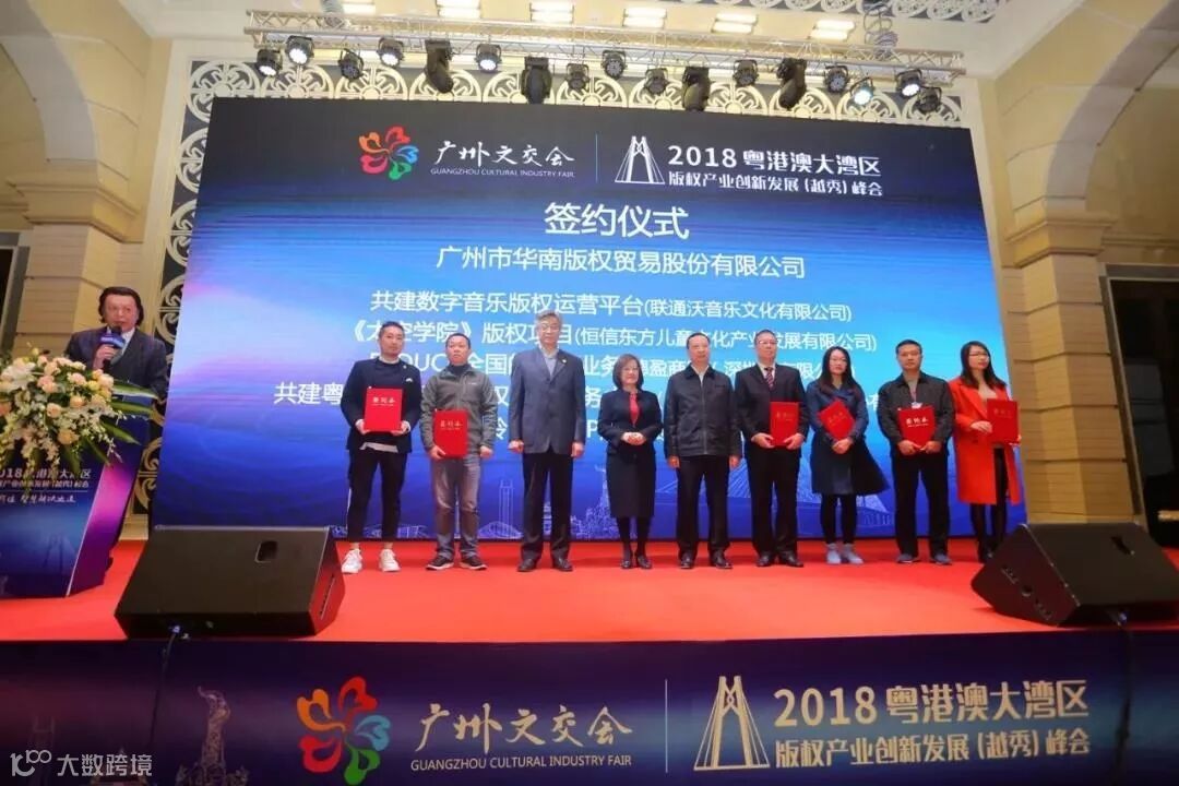 峰会现场,中国出版物版权信息服务中心南方基地、黑龙江工业学院知识产权学院及人才培训基地、联通沃音乐数字音乐版权的运营、B.Duck 全国的维权业务、粤港澳大湾区版权金融服务中心筹建等多个重要项目在峰会上集中签约,全面促进越秀区文化产业发展,助力广州建设国际性文化产业枢纽城市,争做湾区文化交流和传播中心,让文化产业成为粤港澳大湾区新引擎!