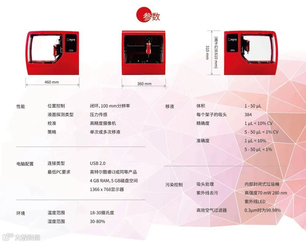 Myra是一款动态液体处理器,在设计时兼顾了风格和功能。它的重量不到 10 kg,占地面积不到 0.17m²,是同类其他仪器的一半。