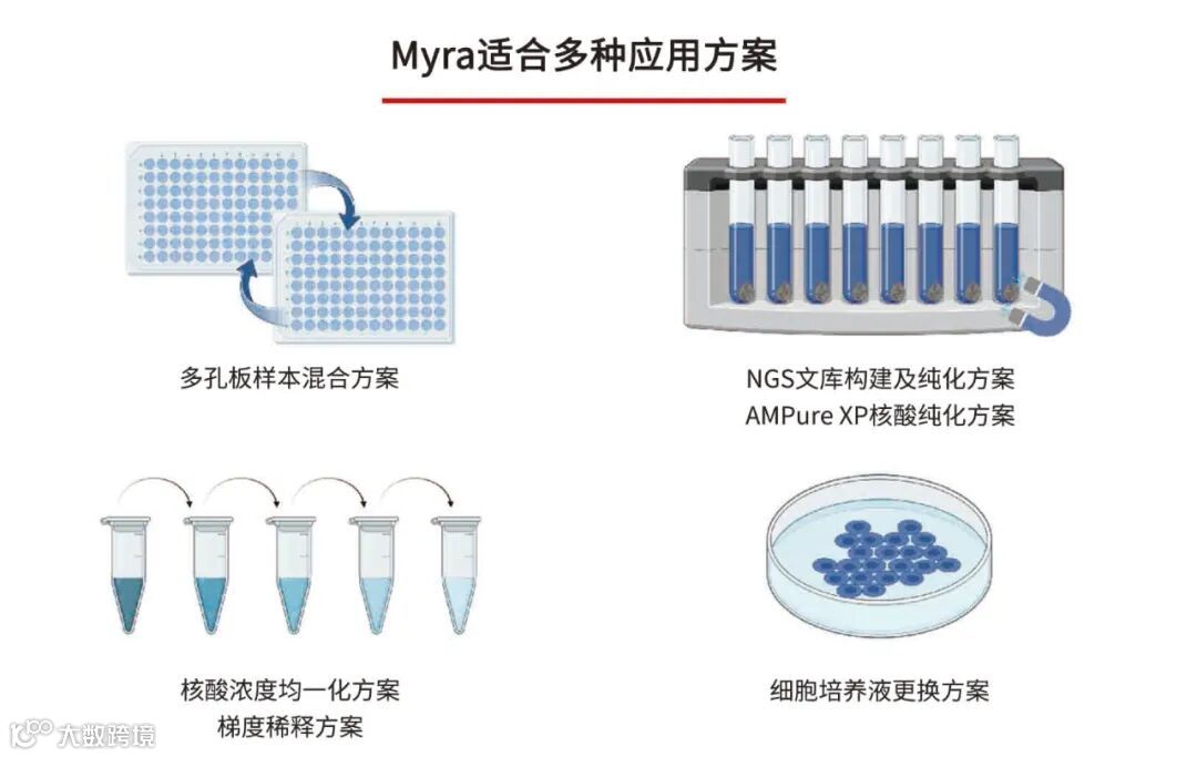 从10倍到低至1.2倍的各种稀释因子的复杂移液模式,都可通过一次Myra设置和Mic运行实现。
