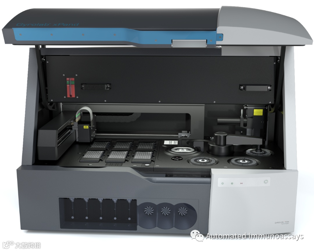 Gyrolab免疫分析平台包括Gyrolab自动化工作站(Gyrolab® xPand, xPlore™),微流控CD(microfluidic CD),以及直观的软件和独有的可视化工具。Gyrolab在微流控CD上进行纳升级的免疫定量检测,样品处理完全自动化,由液体处理机械臂将样品和试剂转移到CD,并由精密的微流控技术利用离心力、毛细作用和疏水塞精确定量加样体积,然后通过激光/检测器对96或112个亲和柱上的荧光信号进行平行检测。通常一片CD的运行时间约为1小时,可产生96或112个数据点。