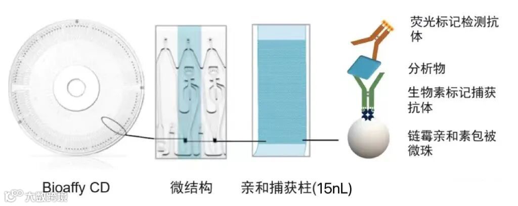 微流控Bioaffy CD是Gyrolab平台的核心,每片CD上有96或112个微观结构(microstructure),每个微结构中预填充15nL 包被链霉亲和素的微珠与生物素标记的捕获试剂相结合。根据CD型号不同,样品体积包括20nL, 200nL, 1000nL和4000nL。Bioaffy CD支持多种免疫实验模式,如直接法,间接法,夹心法,桥连法等。