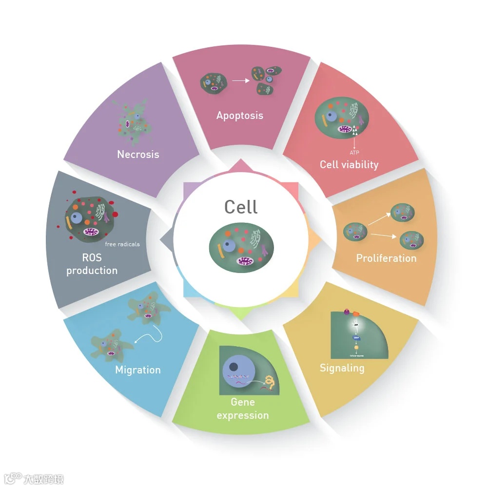 基于细胞的分析(cell-based assay)测量活细胞或固定化细胞中的各种参数,用于研究基因、蛋白质或全细胞功能以及控制这些功能的调节机制,筛选药物开发中生物过程的潜在抑制剂或诱导剂,或发现细胞内效应或反应发生的位置(图1)。