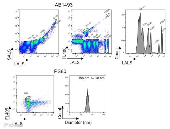 Apogee Micro-Plus纳米流式细胞仪(nFCM)可以分辨尺寸范围为80nm至1300nm的聚苯乙烯和二氧化硅微球,专门为检测纳米级小颗粒设计,非常适合细胞外囊泡、外泌体、大病毒和纳米颗粒的分析,能快速获取样本中细胞外囊泡的尺寸信息,准确浓度以及生物标志物的表达。